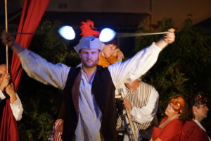 Grâce à nos partenaires escrimeurs, ajoutez de l’action à la troupe itinérante ! Que ce soit sur scène, ou en coulisses, ces arlequins ne pensent qu’à se taper dessus à coup d’épées en bois.