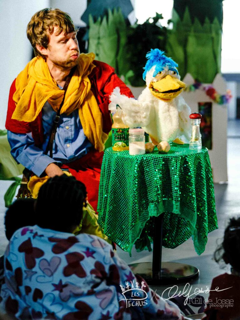 Les acteurs prennent le temps de présenter les marionnettes avant de les manipuler, afin de ne pas effrayer les plus jeunes. De petites portes s’ouvrent dans le décor. Ainsi, les personnages apparaissent et disparaissent, comme sur un livre d’images.