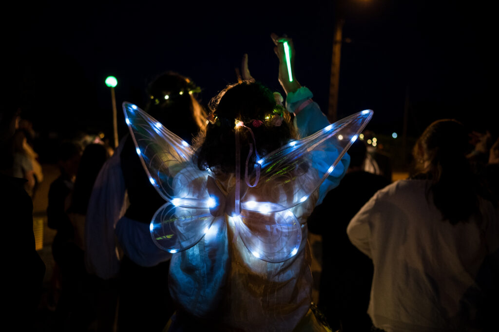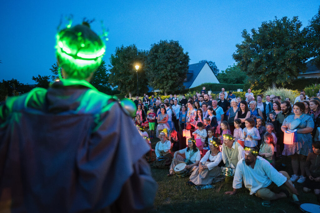 À la tombée de la nuit, sorcières, mages, bonnes fées, guerriers du feu et elfes se réunissent pour trouver le lieu de leur cérémonie. À mesure que la nuit les enveloppe, leur magie se révèle, les costumes deviennent lumineux et font scintiller les yeux des spectateurs. Une fois le cercle de menhirs trouvé, ils auront besoin de l’aide du public pour mener à bien cette cérémonie millénale.
