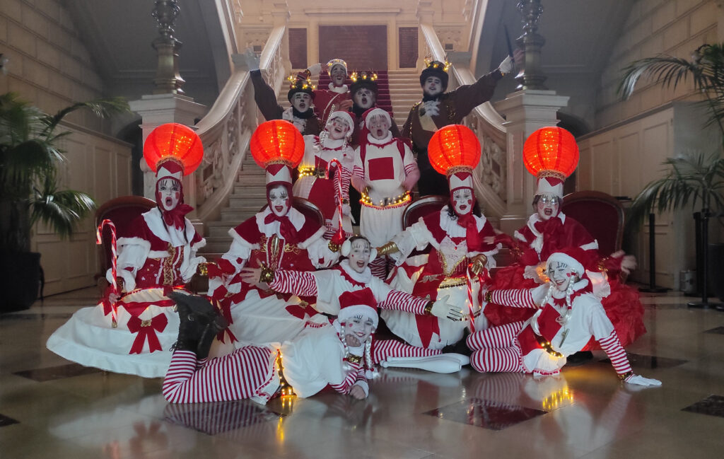 Non plus un musicien, mais quatre ! La joyeuse bande est accompagnée lors de ses déambulations d’une petite fanfare avec banjo, accordéon, violon, soussaphone et clarinette, qui égayeront la foule avec des reprises swinguées de chants et mélodies de Noël du monde entier !