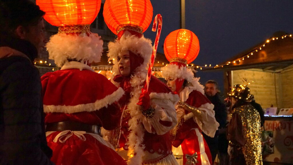 – Animation de marché de Noël, visite décalée de centre ville, etc. (extérieur/intérieur)